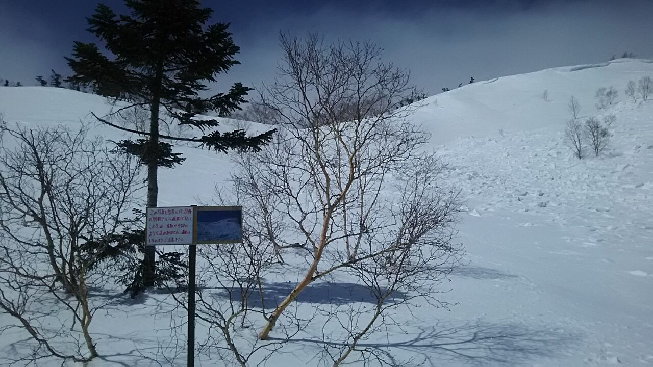 先日の雪崩で埋没してしまった看板を、場所を改めて二本再設置しました(今シーズン暫定的にです)。