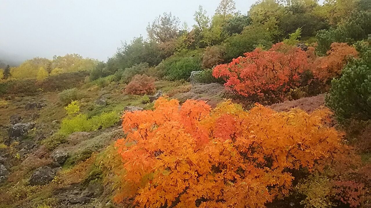 今朝は時間がとれたので朝に観察にでかけました。ダケカンバの黄色が良くなってきました。昨夜の雨であらわれ、輝きを増したようにみえます。ナナカマドも一部緑で残っていた株が、ようやく色づいてくれました。遅れていましたが、今年の見頃となりました!ただこの先の天気予報が連休にかけて思わしくありません。寒気も入りそうです。一日を通しての好天は難しそうなので、わずかな隙を狙ってお越しください。寒気の流入で雪になれば落ちてしまうかもしれません。また日差しがなければかなりの寒さとなりますので、防寒具は必携となります。今年の紅葉は、残された時間が少なくなってきています。寒さ覚悟でお越しください。