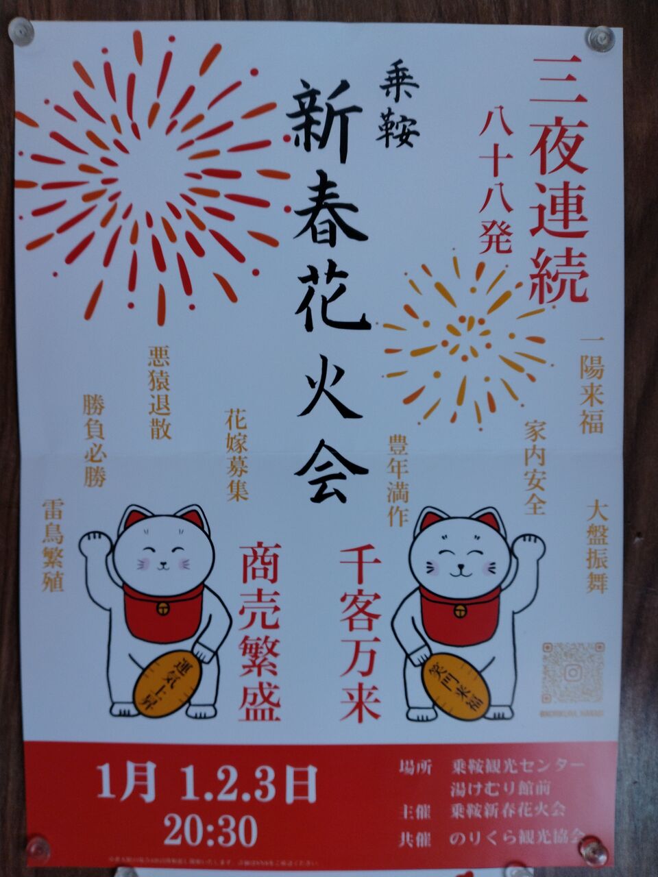 さあ、雪は少なくちょっと寂しいですが、それを吹き飛ばすように、今夜から3日間乗鞍高原で花火を打ち上げます!毎日20時30分から湯けむり館向かいの場所です。3日間あります!