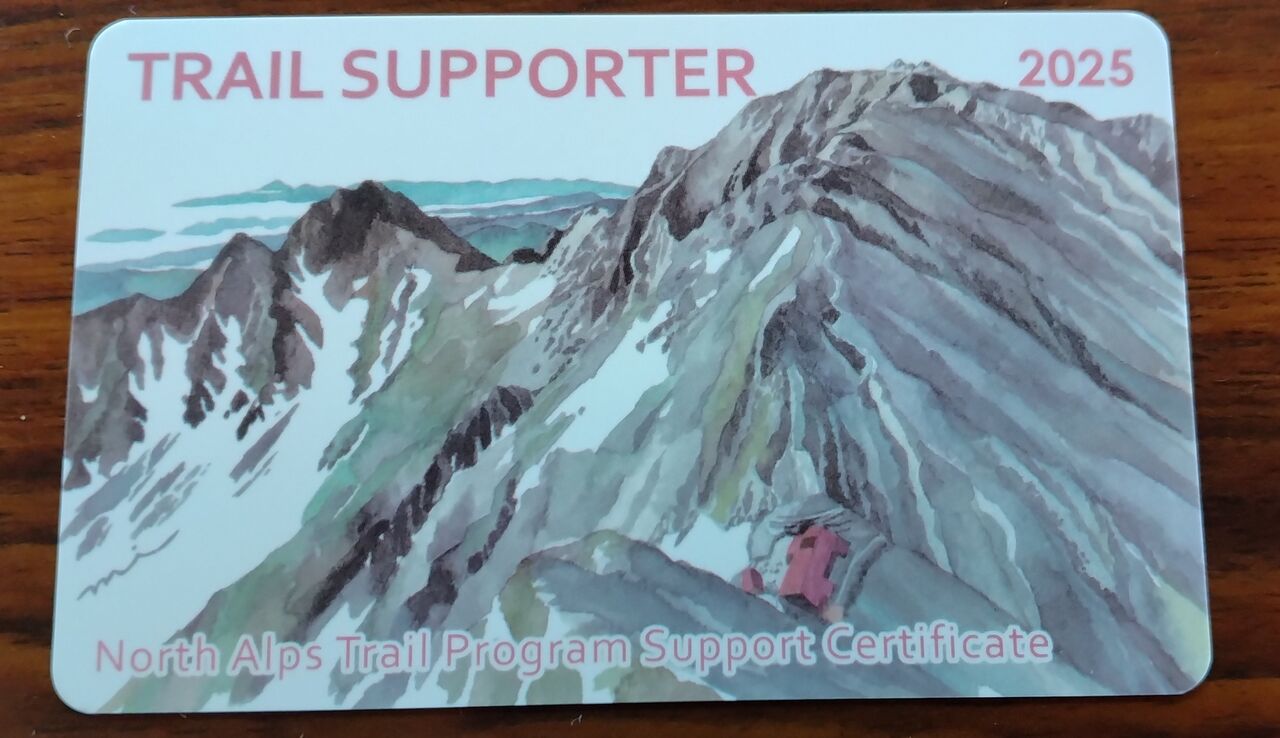 今年も、北アルプストレイルプログラムの活動に協力いただいた方へ、協力証「トレイルサポーター」をお渡ししています。